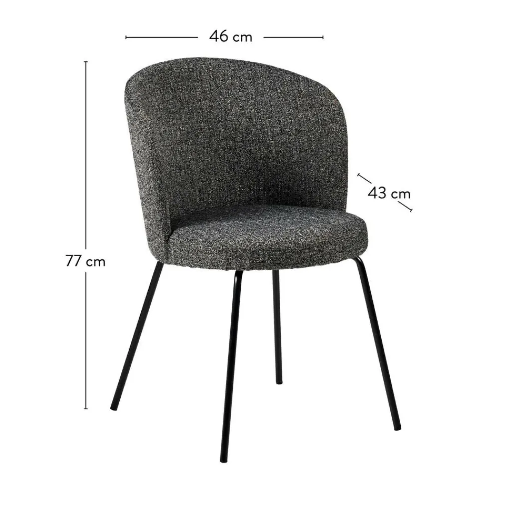 - Tissu : 100% polyester, Pieds : métal, laque en poudre noir mat, Assise & accoudoirs, velours, mousse polyuréthane