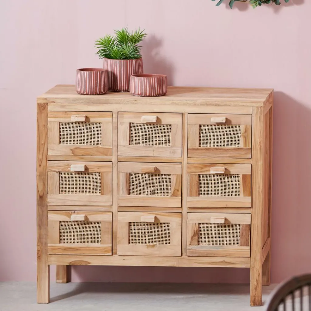 - Structure : teck – Tectona grandis (Indonésie), Non traité, Tiroirs : rotin